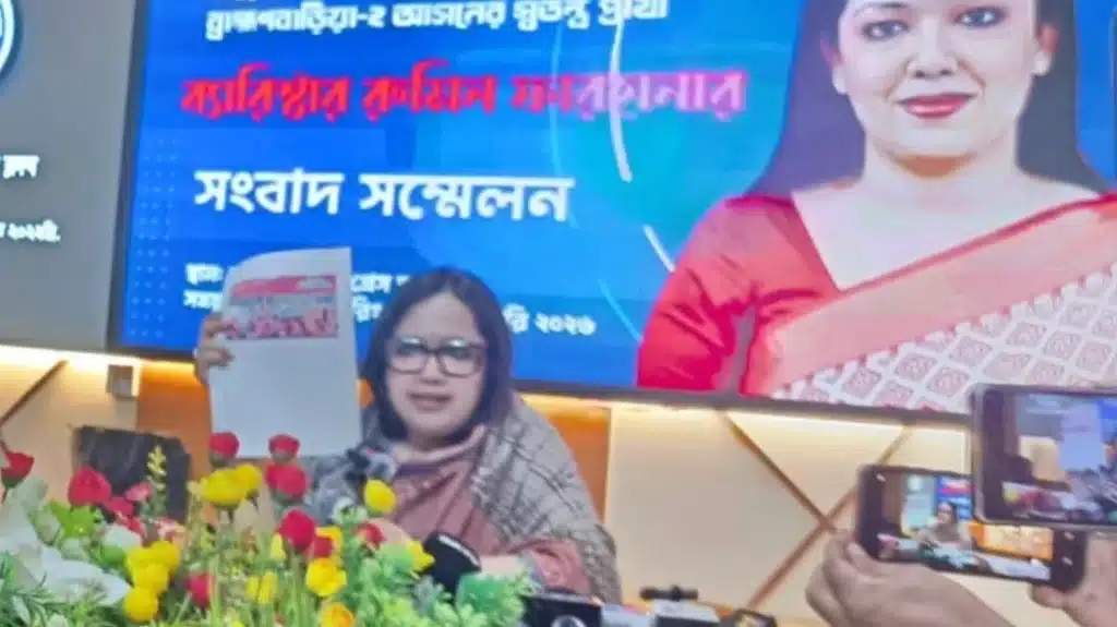 এর আগে রোববার বিকেলে সরাইল উপজেলার কালীকচ্ছ এলাকায় মতবিনিময়কালে রুমিন ফারহানা নির্বাচন সংশ্লিষ্টদের উদ্দেশে ‘৫ আগস্ট’-এর কথা মনে রাখতে বলেন। তিনি বলেন, ‘আমি আশা করি প্রশাসন, পুলিশ, নির্বাচন কমিশন ও সরকার নিরপেক্ষ ভূমিকা পালন করবে। কাউকে ডান চোখে, কাউকে বাম চোখে দেখবেন না। নিরপেক্ষতা না থাকলে সারা বাংলাদেশে যেমন ৫ আগস্ট হয়েছিল, তেমনি যেকোনো আসনেই ৫ আগস্ট ঘটতে পারে।’
