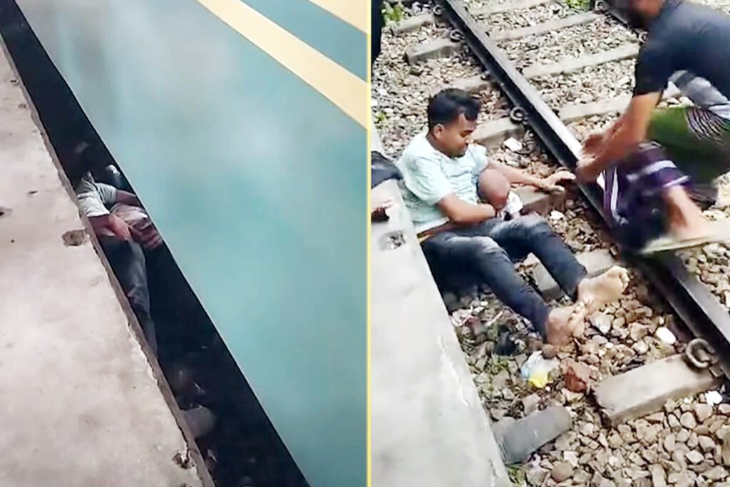 চলন্ত ট্রেন থেকে প্ল্যাটফর্ম ও ট্রেনের মাঝখানের সরু ফাঁকা জায়গায় পড়ে যাওয়া এক বছর বয়সী ছেলেকে ঝাঁপ দিয়ে বাঁচিয়েছেন বাবা।