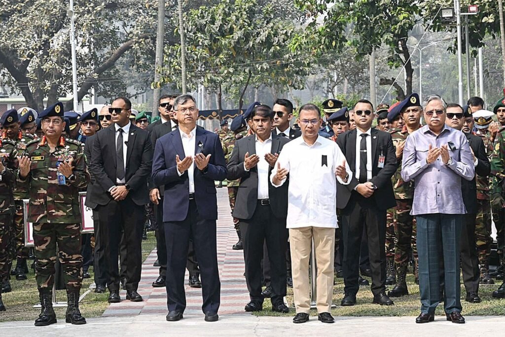 আজ বুধবার সকাল ১০টা ৫ মিনিটে রাজধানীর বনানী সামরিক কবরস্থানে প্রথমে রাষ্ট্রপতি মো. সাহাবুদ্দিন এবং পরে প্রধানমন্ত্রী তারেক রহমান শহীদ বেদিতে ফুল দিয়ে শ্রদ্ধা জানান।