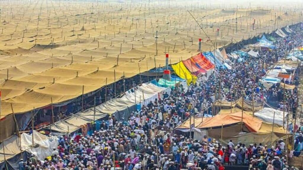 তাবলিগ জামাতের উদ্যোগে ২ থেকে ৫ জানুয়ারি পর্যন্ত চলবে এবারের বিশ্ব ইজতেমা। প্রথম দিন থেকেই ময়দানে মানুষের ঢল নেমেছে। আয়োজকদের প্রাথমিক হিসাব অনুযায়ী, ইতোমধ্যে কয়েক লাখ মুসল্লি এই ধর্মীয় সমাবেশে অংশ নিয়েছেন। বিভিন্ন দেশ থেকেও বহু মুসল্লি এসেছেন ইজতেমায় অংশ নিতে, ইসলামি বয়ান শুনতে এবং দোয়া ও মোনাজাতে শরিক হতে। বিশাল ময়দানজুড়ে মুসল্লিরা নামাজ, আমল ও ধর্মীয় আলোচনায় গভীর মনোযোগে সময় কাটাচ্ছেন।
