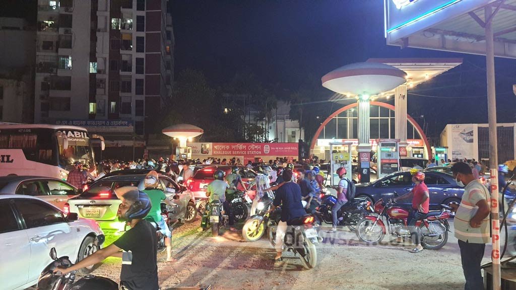 রাতেও পেট্রোল পাম্পে গাড়ির জট