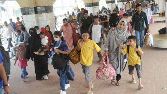 অফিস শেষে ঢাকা ছাড়ছেন অনেকে